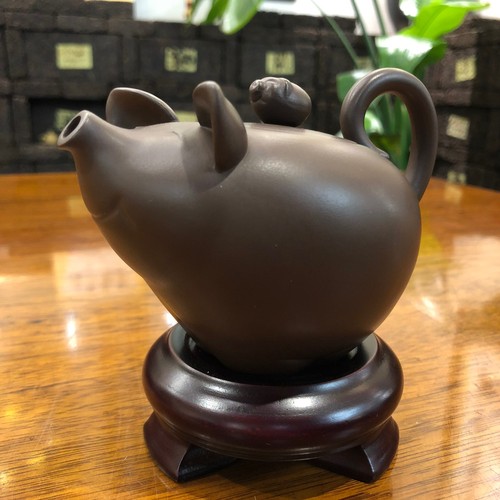 以簡約的元寶線條帶出體態憨厚圓滿的豬造型,而蓋紐上的元寶型小豬,凸顯生肖豬在傳統文化中財富豐足的象徵,整體上有珠豬引金福的意味。而神韻生動有趣,圓融安定的外表,描繪出豬的福相溫馴可愛模樣,以及象徵氣量寬廣,平安吉祥,諸事圓滿的人生意境。另有以段泥製作的金豬壺。